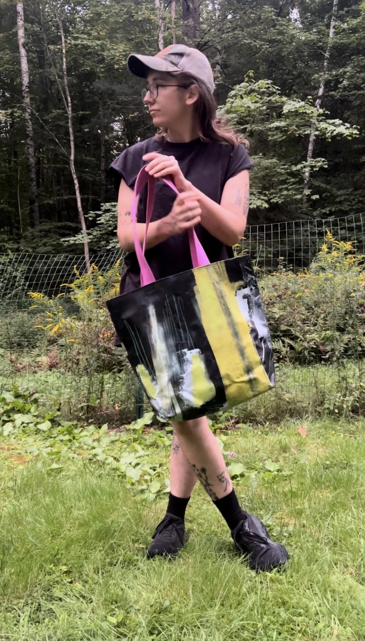 Chel is an artist living and working in Portland, Maine. Fueled by the desire to connect with and convey an ever-shifting sense of self, their practice leans into impermanence. Through meditatively allowing all intuitively felt colors, marks, and shapes to be made, and then responding and editing, they seek to find resolution visually and within a feeling. They use paint and other mediums to create tenuously balanced compositions that are deeply layered and fully activated, each piece a filter through which loneliness, grief, and the anxious dream of living pass.